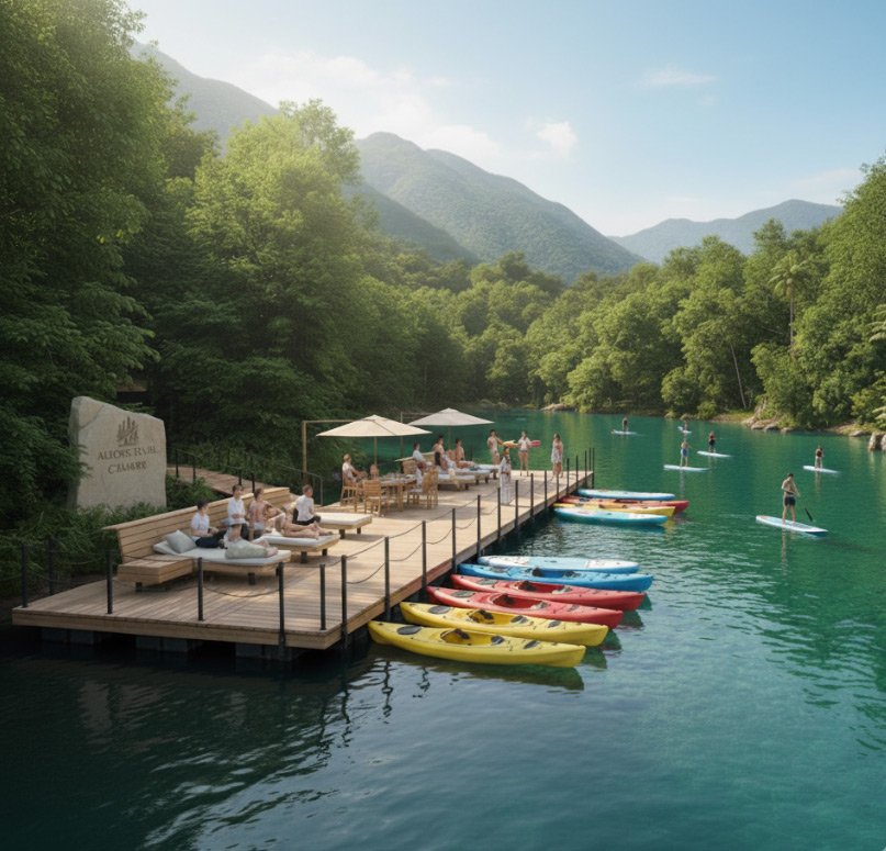 Club náutico fluvial con playa de río